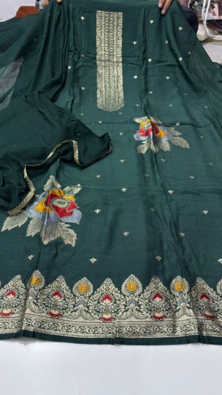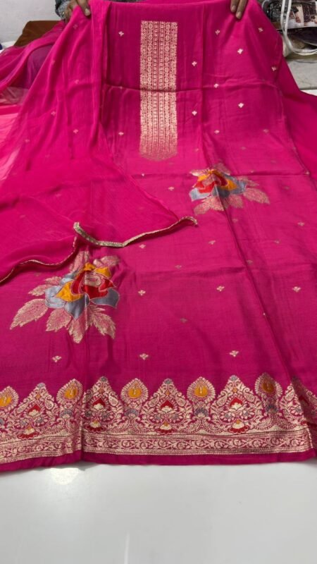 Step into luxury with our KDH Exclusive Pure crape digital designer shirt with hand work, beautifully crafted for weddings, festive events, parties, and special occasions. With rich hand-style pure crape embroidery and a regal chiffon dupatta, this ensemble is the perfect blend of tradition and sophistication.