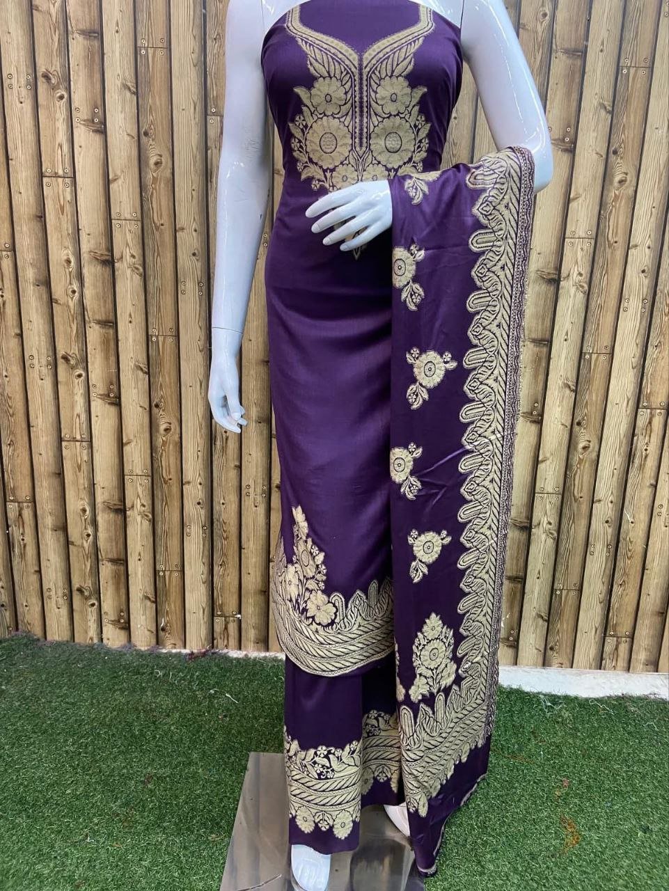 • Top (Shirt): Pure Acrylic Woolen fabric with rich Kaani Weaving and intricate embroidered motifs – 2.50 meters